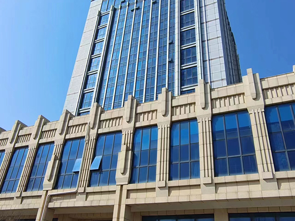 煙臺牟平恒豐銀行培訓(xùn)中心位于山東省煙臺市牟平區(qū)新城大街618號,幕墻施工于2011年。裙樓為明框玻璃幕墻和石材幕墻,主樓為明框玻璃幕墻和鋁塑板幕墻,明框玻璃幕墻面積約為5000㎡,石材幕墻面積約為3000㎡,鋁塑板幕墻面積約為3000㎡。