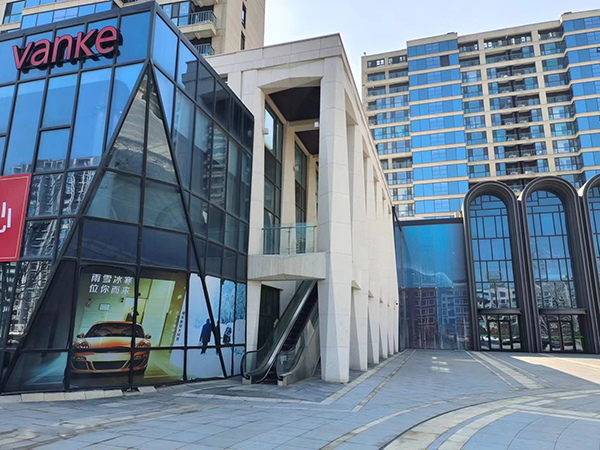 萬(wàn)科翡翠長(zhǎng)安臨街商鋪幕墻施工于2019年,外裝修采用明框玻璃幕墻、石材幕墻及鋁單板,其臨街商鋪、內(nèi)庭院及下沉庭院幕墻總面積約為11000㎡,明框玻璃幕墻4100㎡、石材幕墻為進(jìn)口石材施工面積為4500㎡、鋁單板幕墻施工面積為2000多平方米。